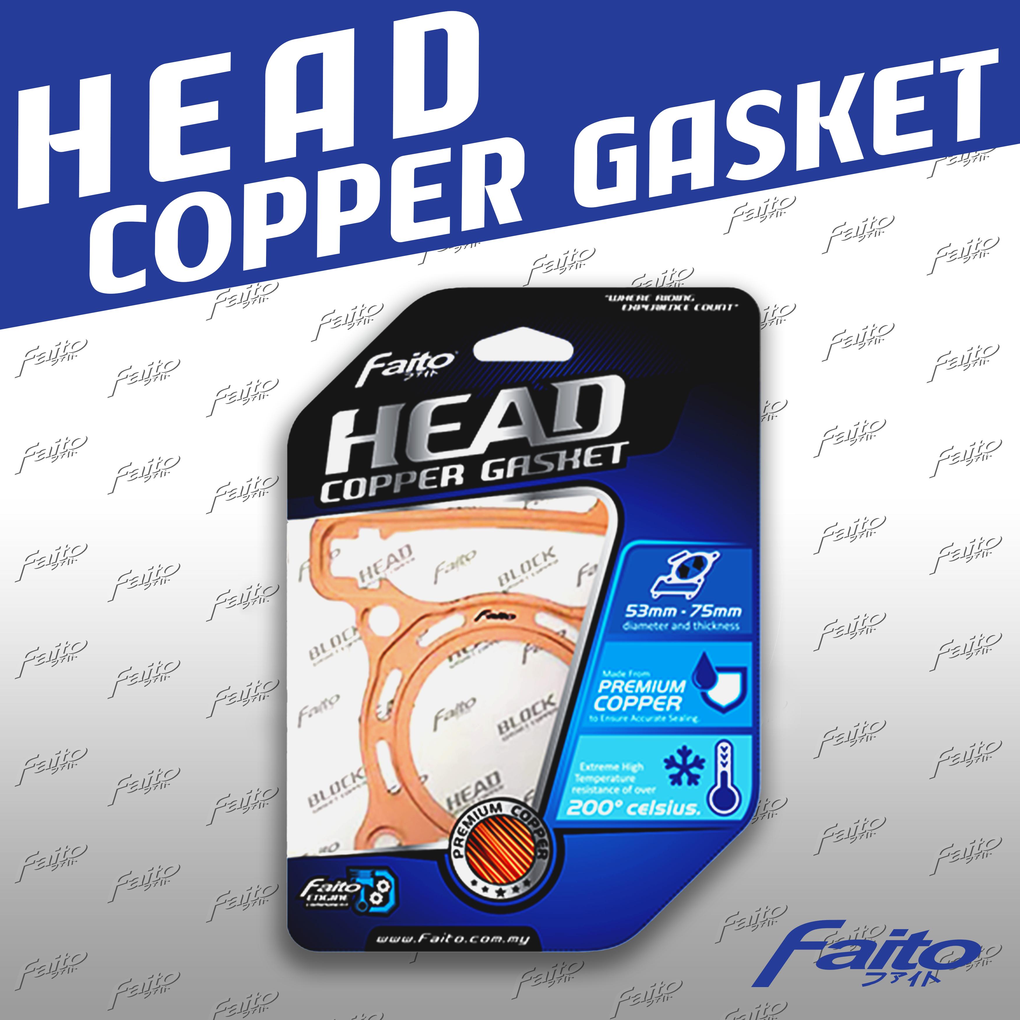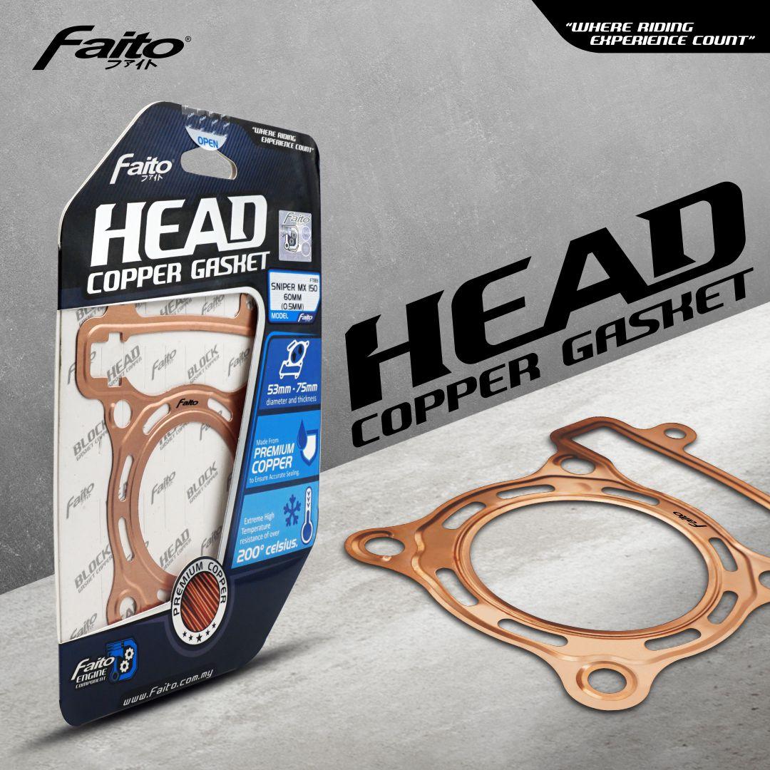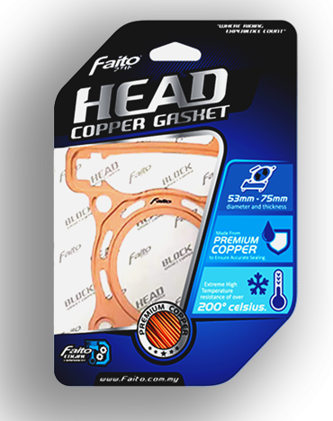 Faito Racing Head Copper Gasket is a head gasket that serves to seal the two surfaces of the parts that are put together to prevent leakage. This gasket is made of a special premium copper material, which has high pressure strength, ensuring there is no leakage between the two surfaces due to high and excessive pressure in the fuel chamber, and this high-quality material is not easily damaged by chemical substances found in the vehicle engine. (engine oil, side oil, transmission oil, radiator water, fuel, and lubricants/additives).