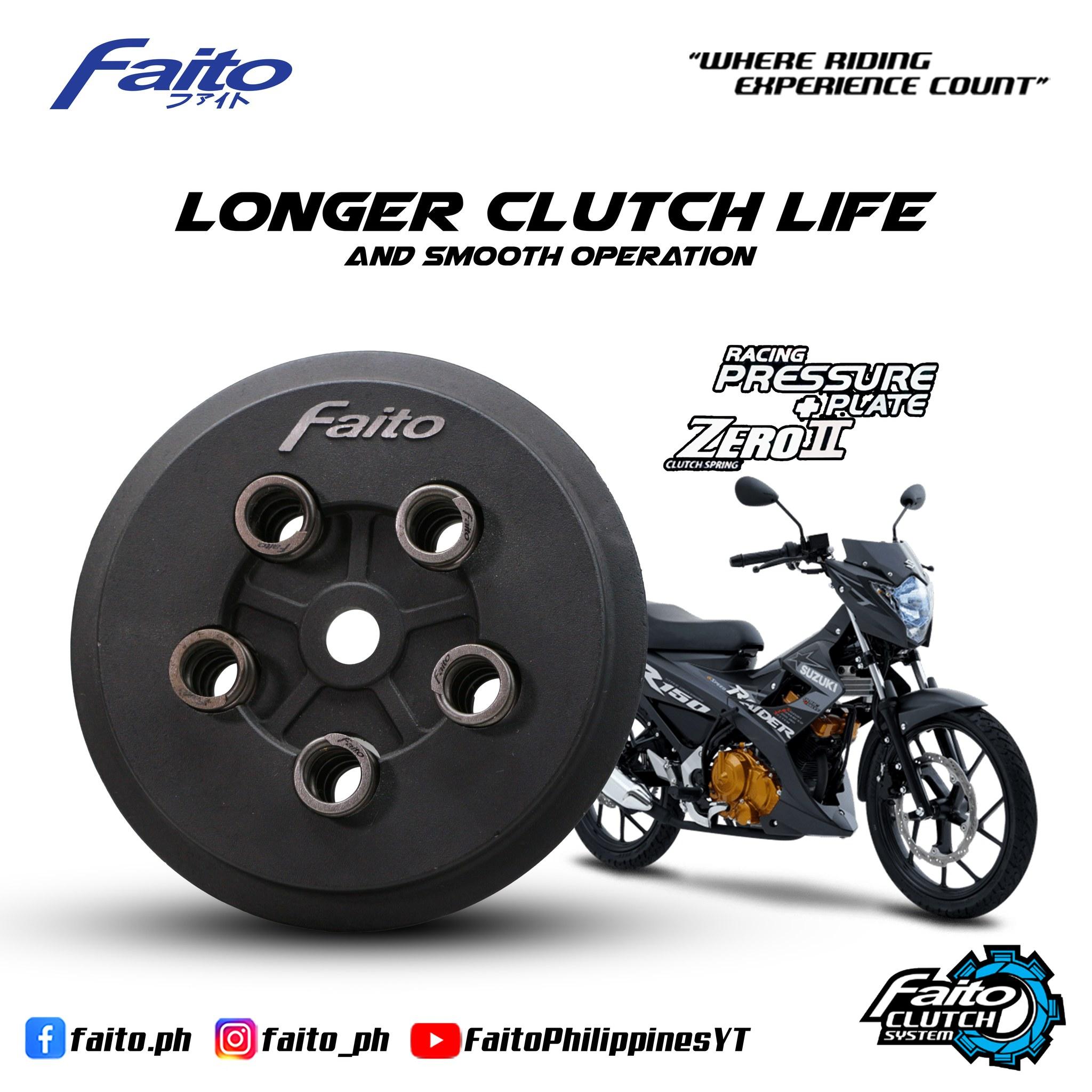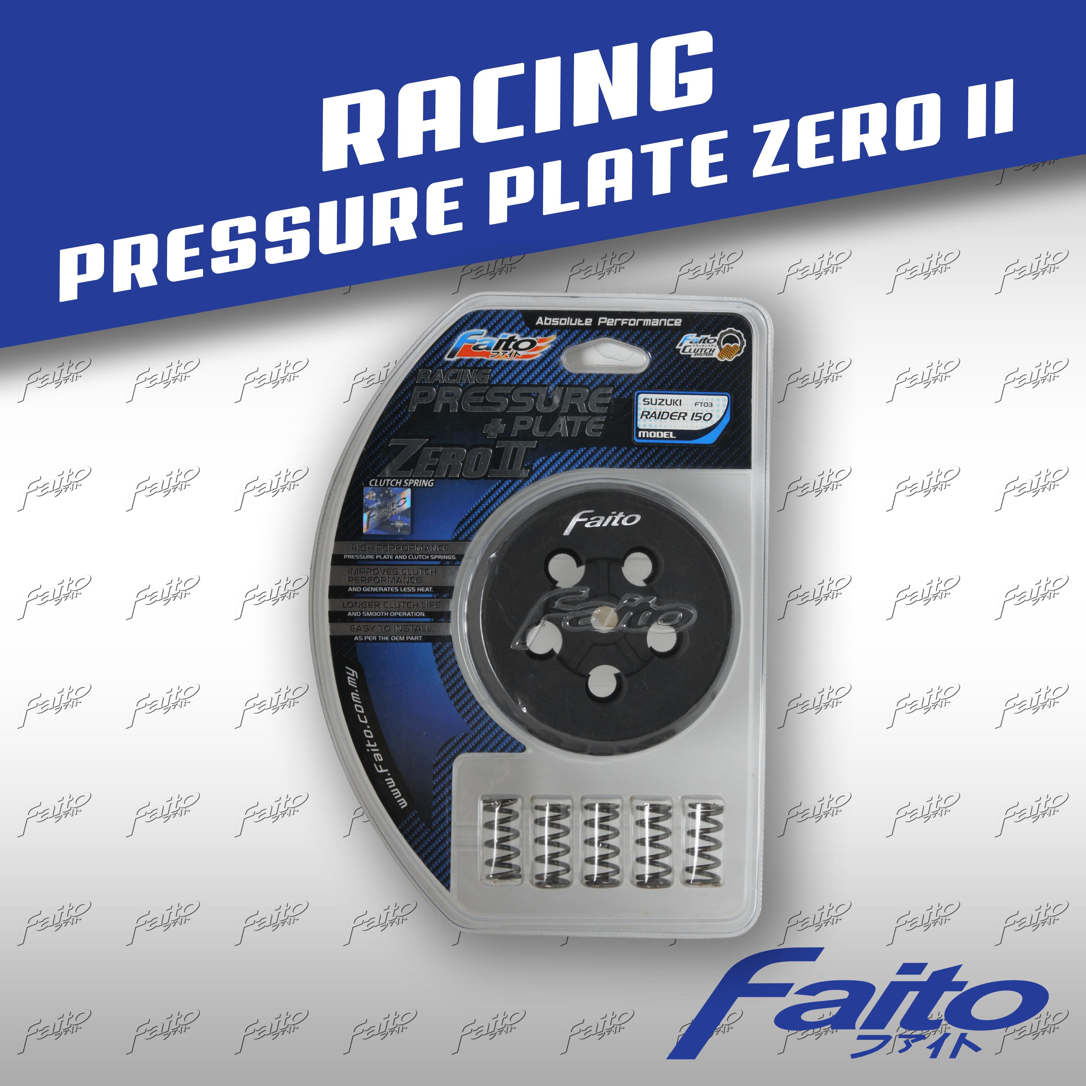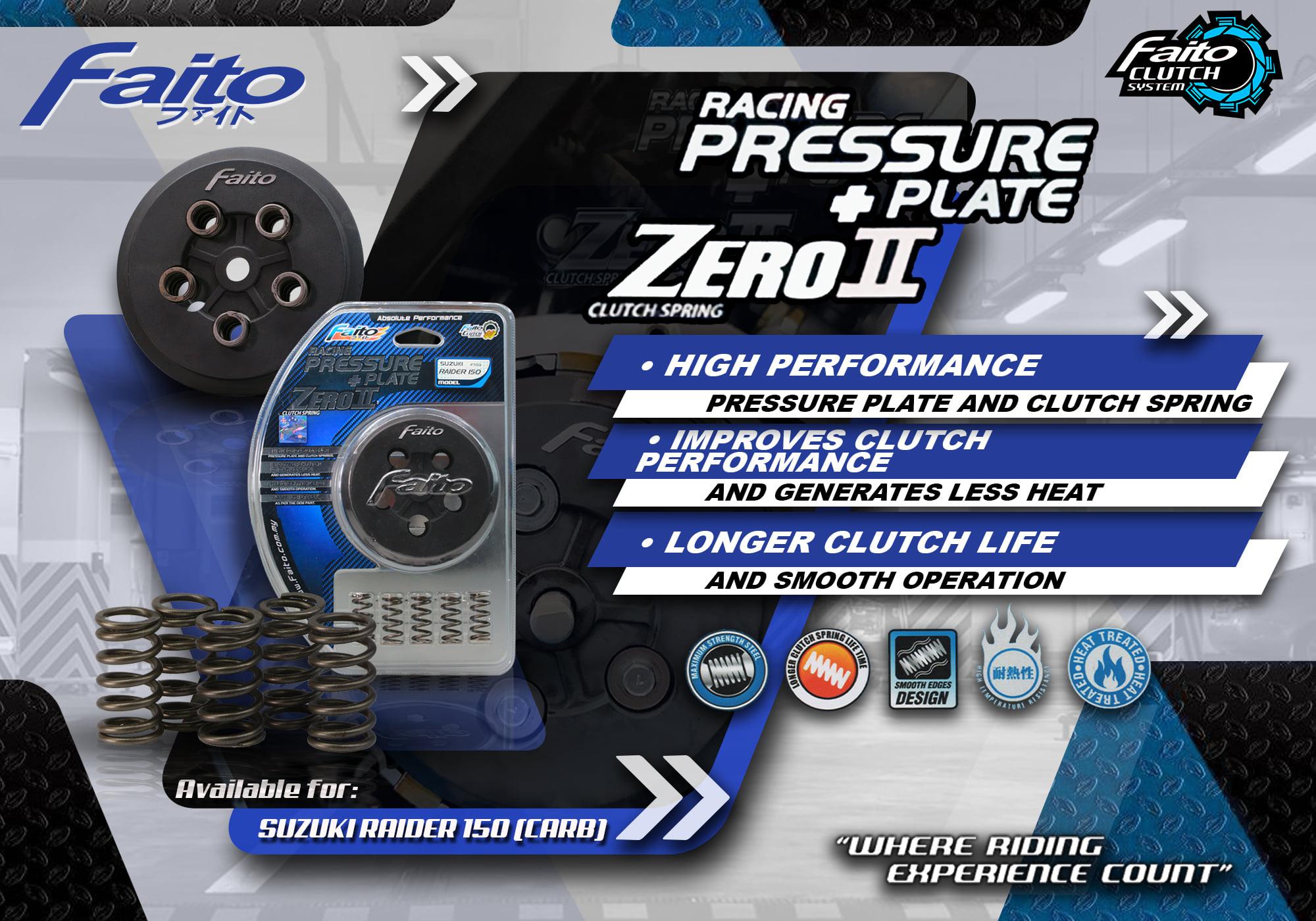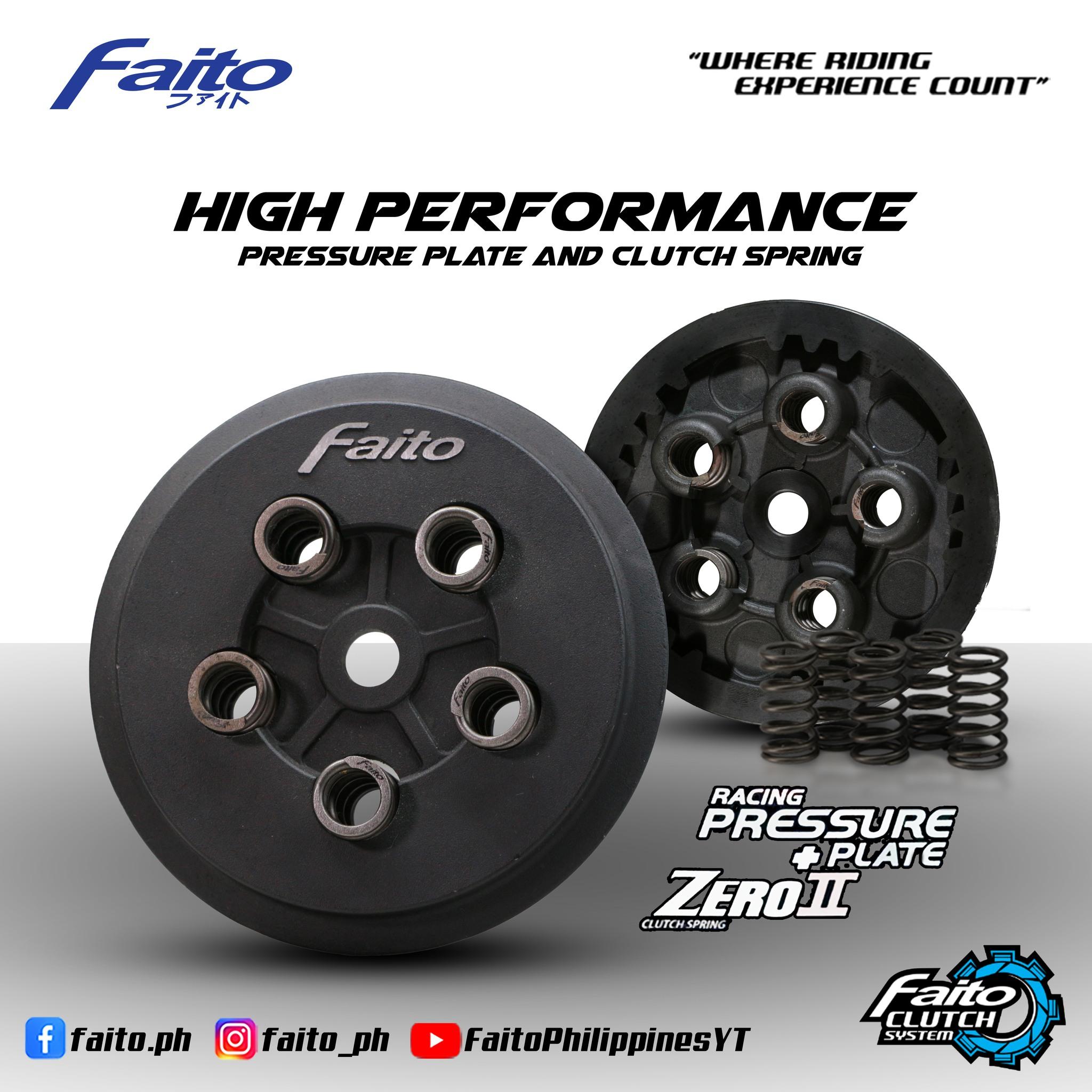 FAITO CLUTCH PRESSURE PLATE KIT HAS BEEN SPECIFICALLY MATCHED WITH FAITO ZERO II CLUTCH SPRINGS FOR ENHANCED CLUTCH PERFORMANCE FOR HIGH PERFORMANCE ENGINES. THE CLUTCH PRESSURE PLATE IS SPECIALLY DESIGNED TO REDUCE HEAT GENERATION FOR BETTER WEAR RESISTANCE AND IMPROVES CLUTCH LUBRICANT FOR A CONSISTENT AND POSITIVE CLUTCH OPERATION. OUR PRECISION ZERO II SPRNG MAINTAINS FIRM AND EVEN PRESSURE ON THE SPECIALLY DESIGNED PRESSURE PLATE ALLOWING THE CUTCH ASSEMBLY TO SPIN ACCURATELY FOR A SMOOTH CLUTCH OPERATION. RECOMMENDED TO USE WITH FAITO THUNDER CLUTCH PLATES FOR ADDED DURABILITY AND PERFORMANCE.